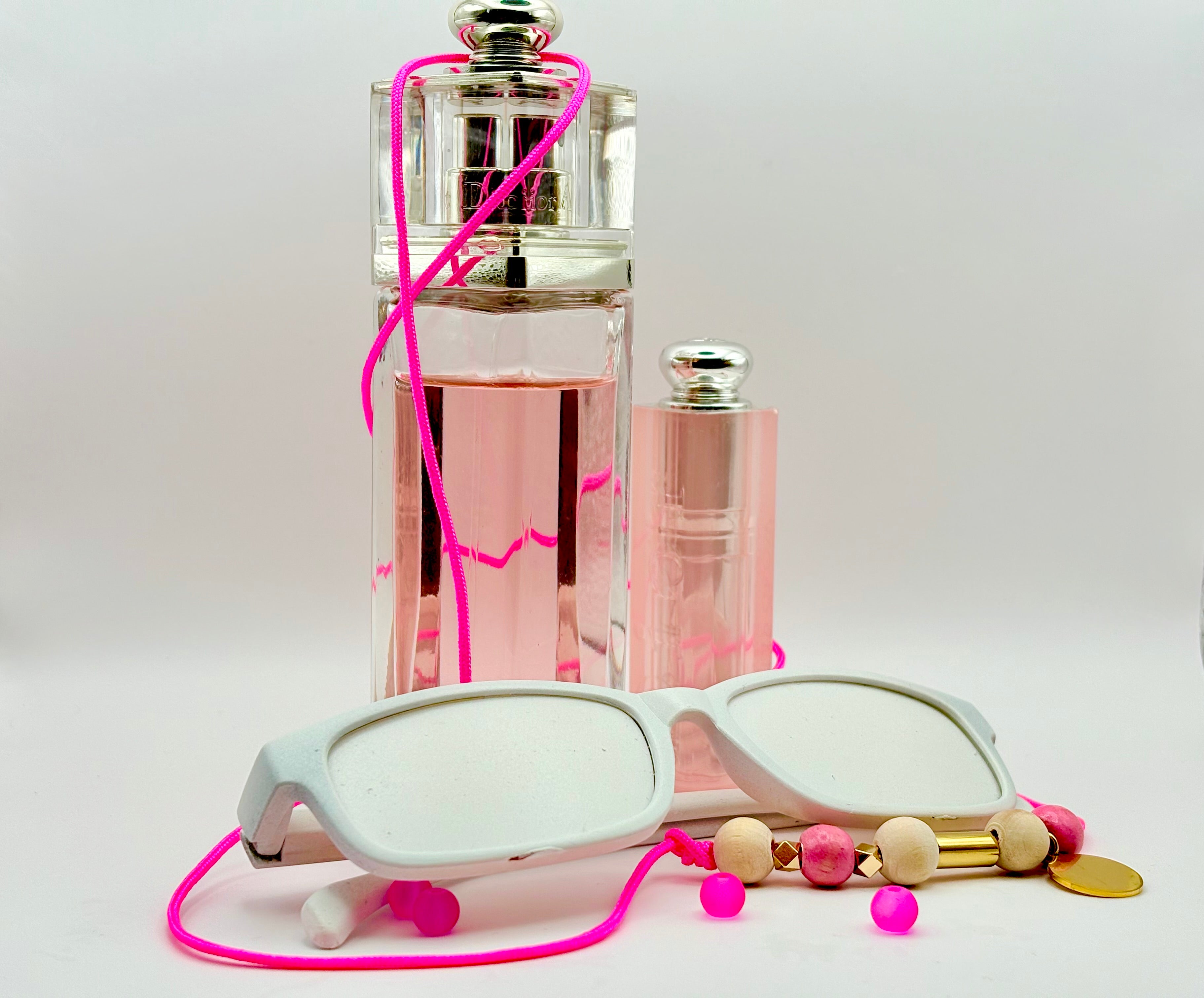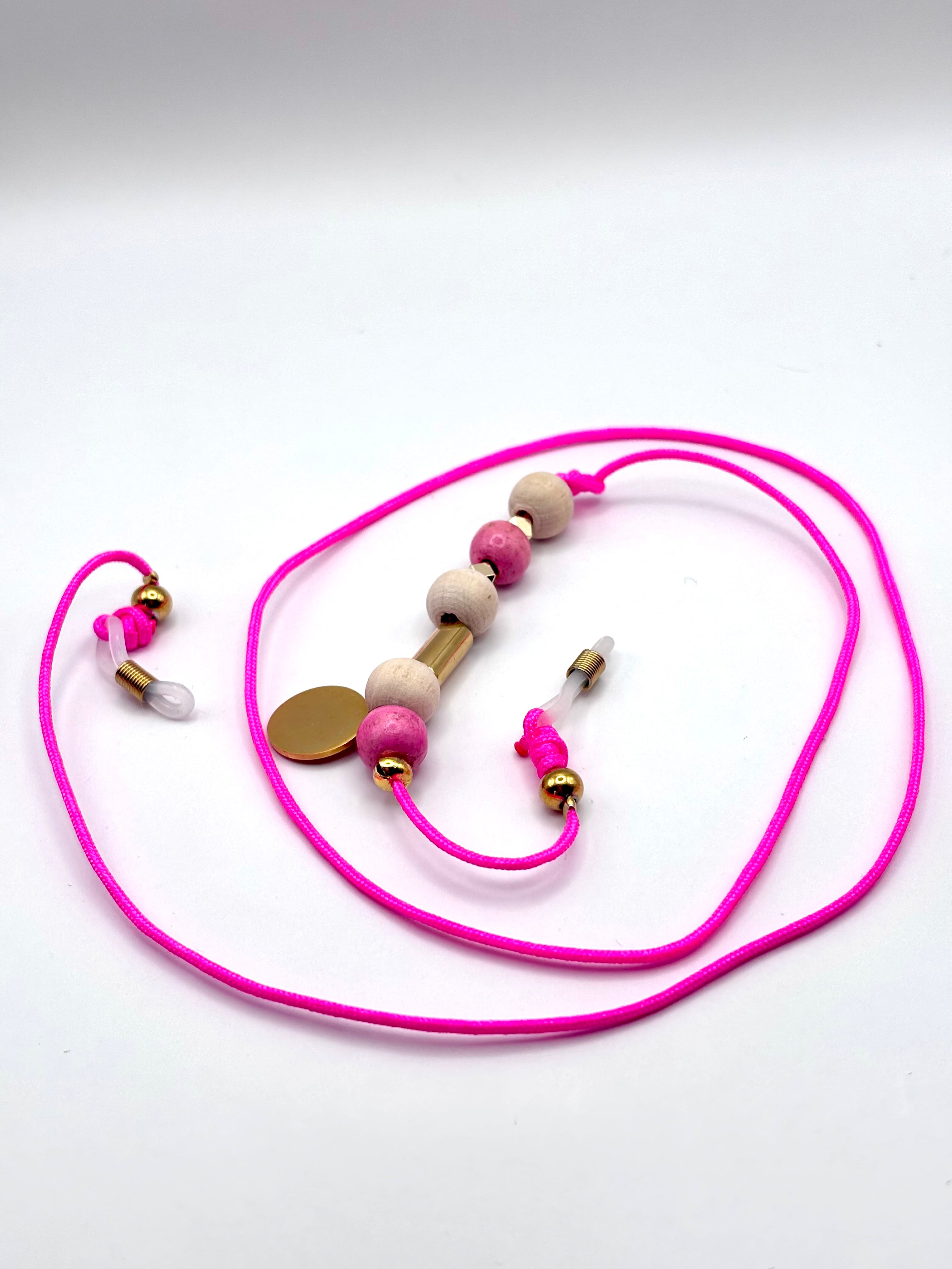 CHAINE EN COTON ROSE FLUO AVEC PERLES EN BOIS