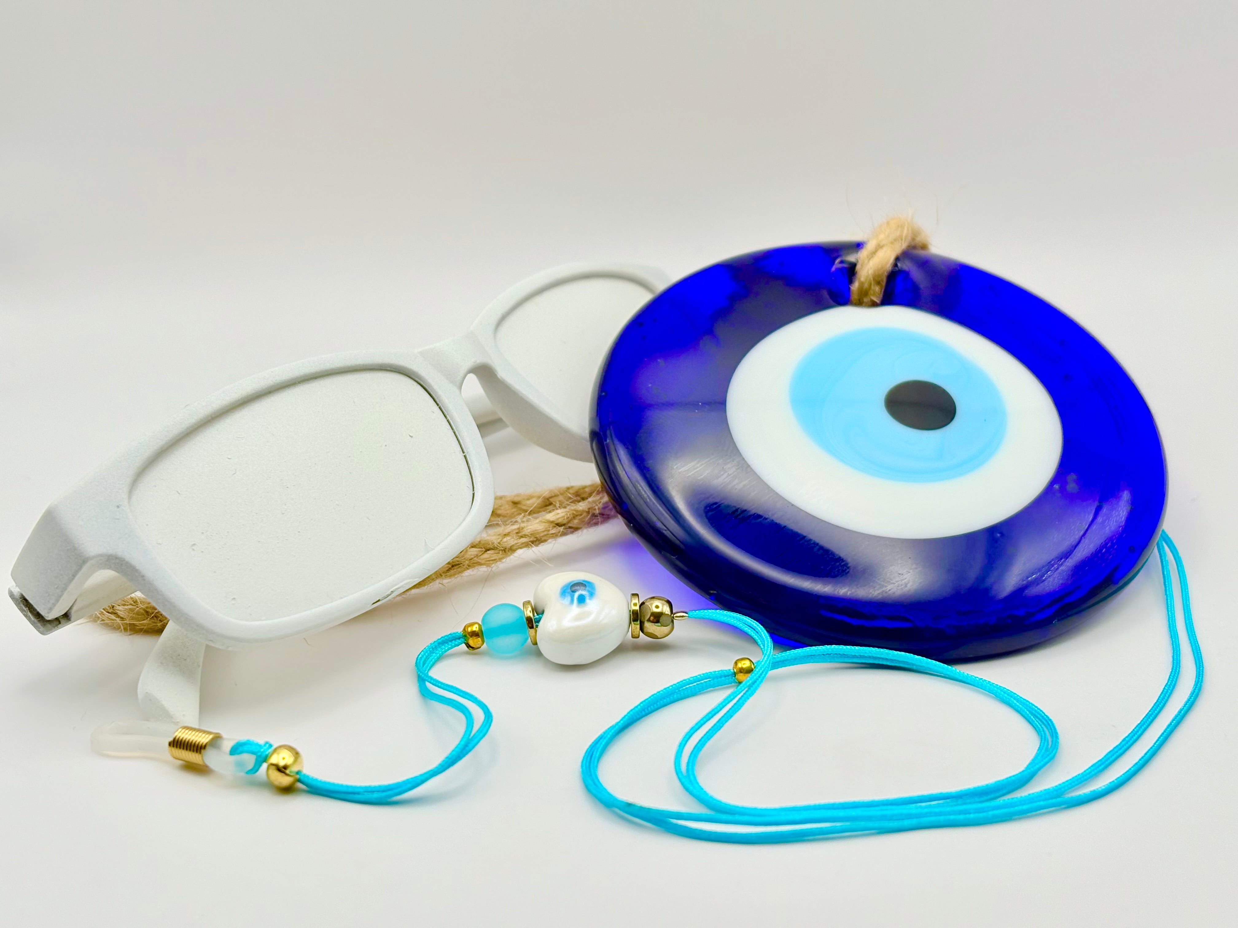 CHAINE EN COTON BLEU FLUO AVEC OEIL PROTECTEUR