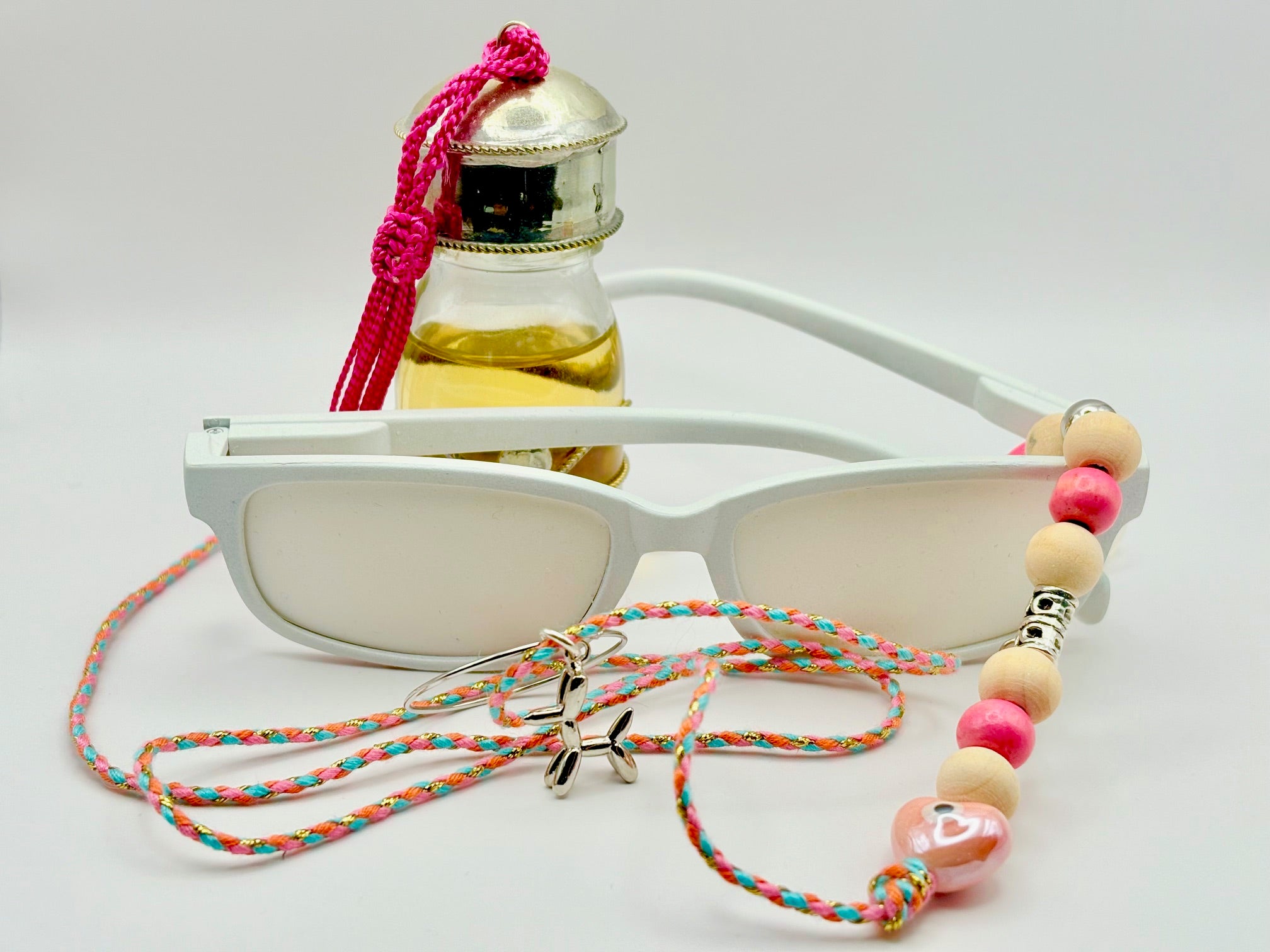 CHAINE TRESSEE ROSE AVEC PERLES EN BOIS