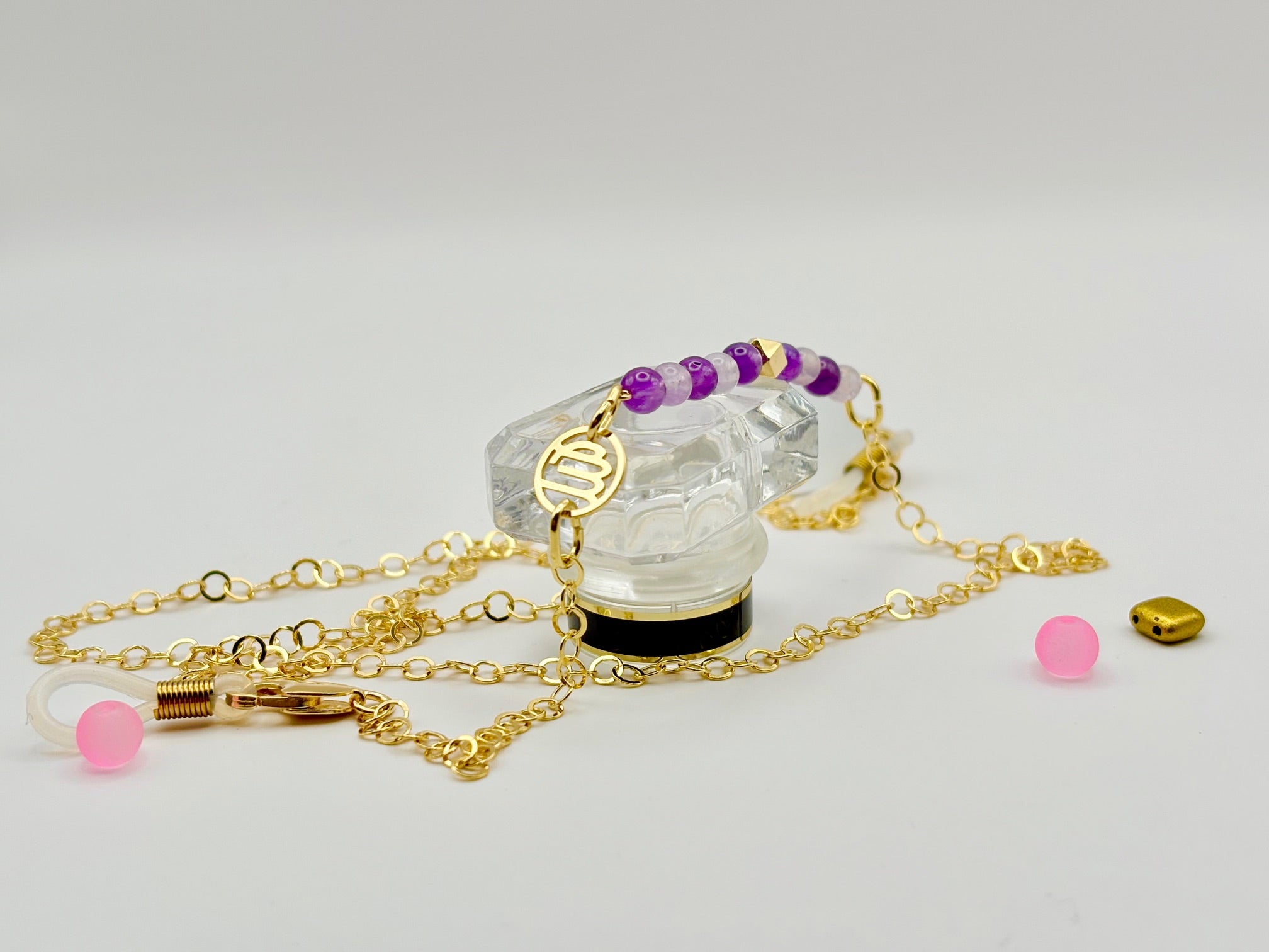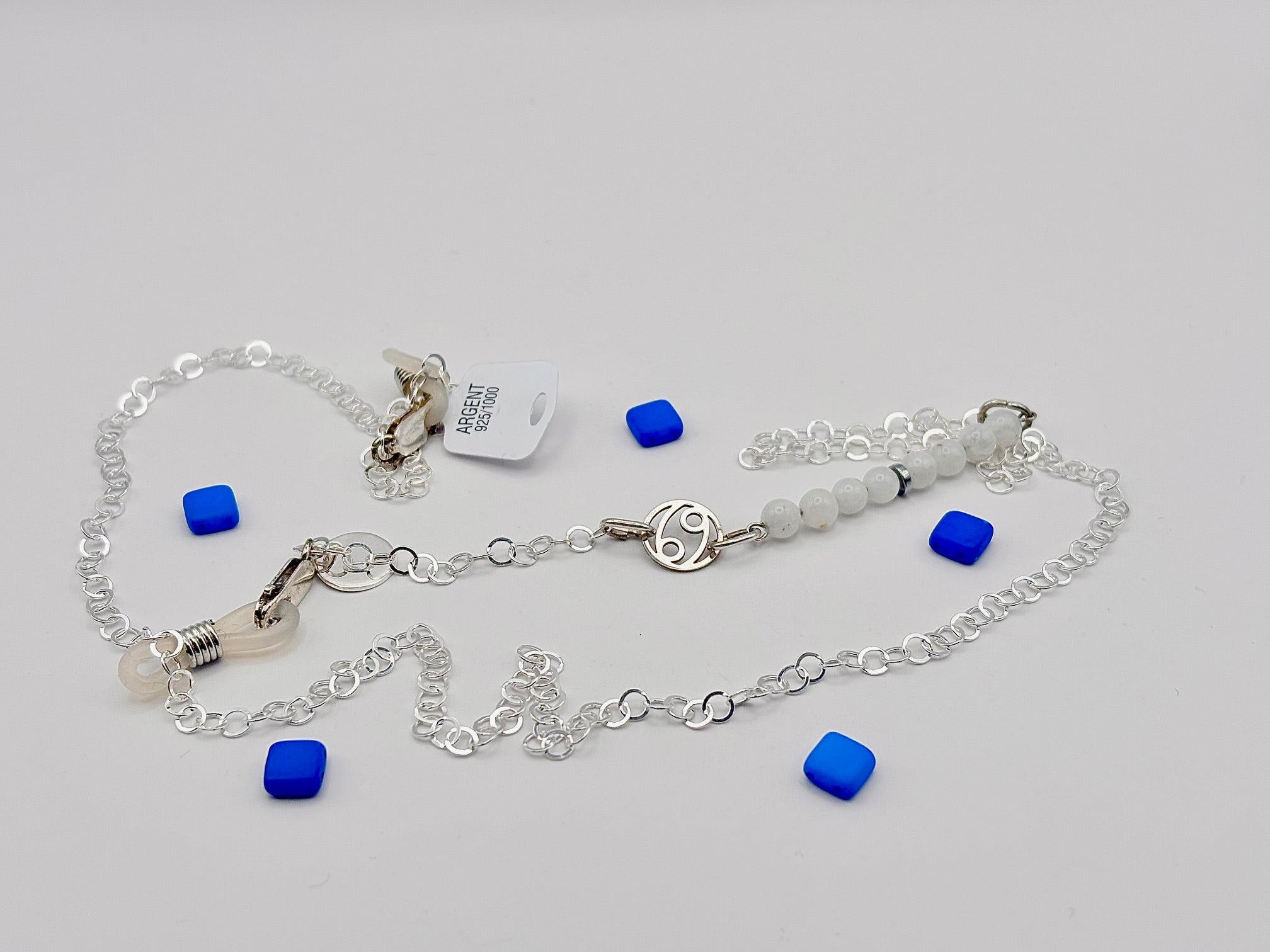 Votre bijou artisanal de 70 cm environ, est réalisé avec une chaîne et un fermoir en plaqué or ainsi que deux attaches en silicone. Votre signe astrologique est mis en valeur sur votre chaîne.