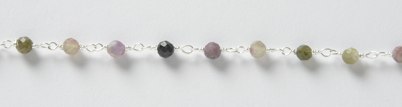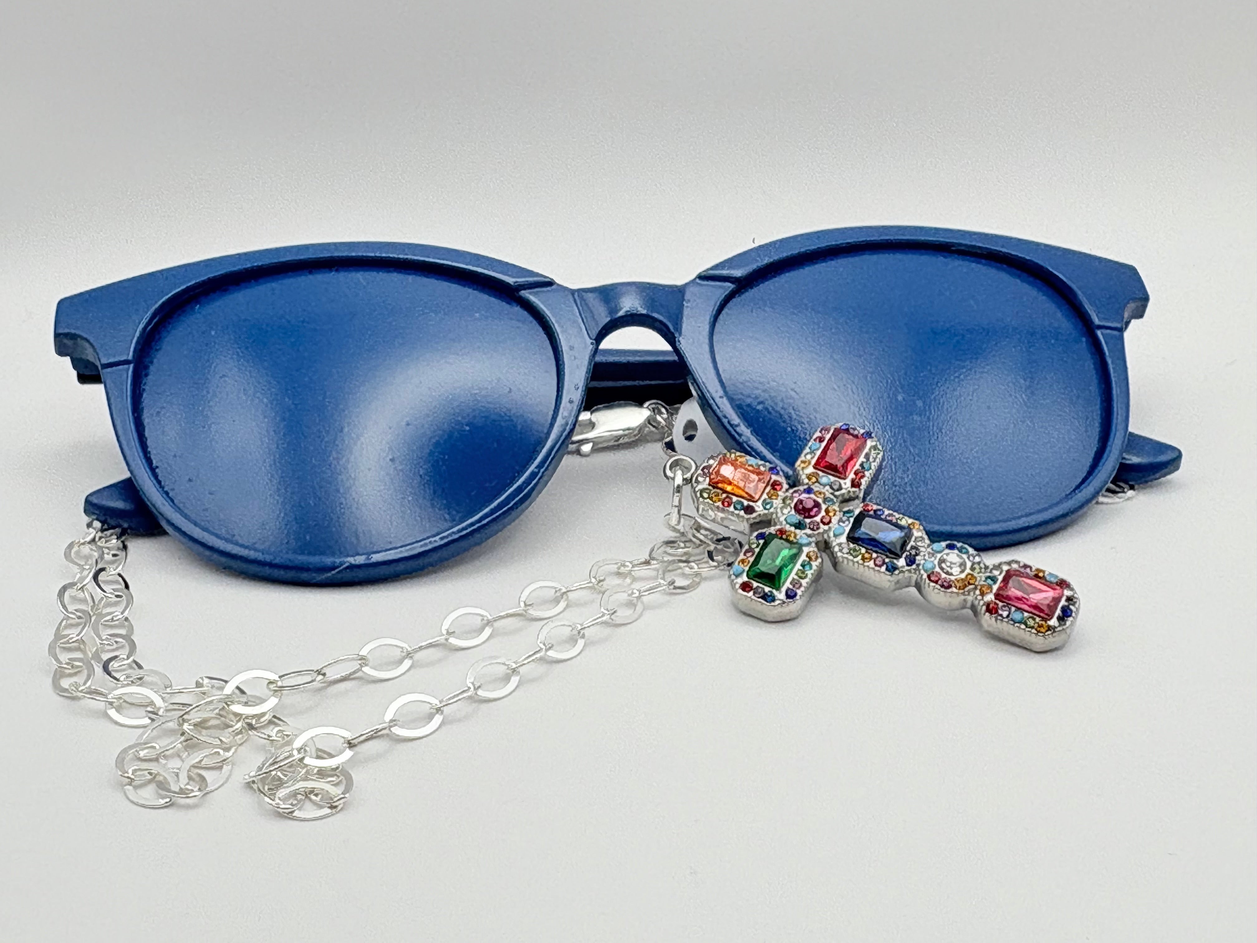 CHAINE EN ARGENT, CROIX MULTI-CRISTAUX