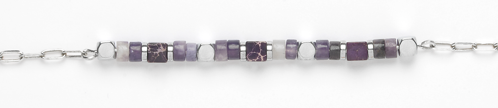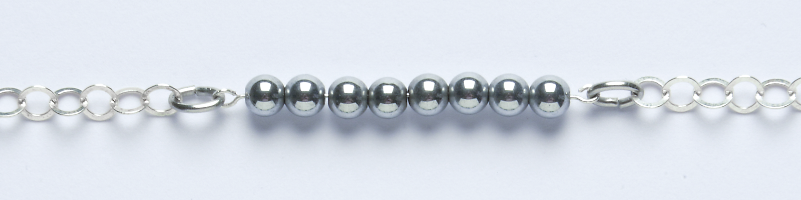 CHAINE ARGENT AVEC DUO DE PERLES D'EAU DOUCE ET HEMATITE
