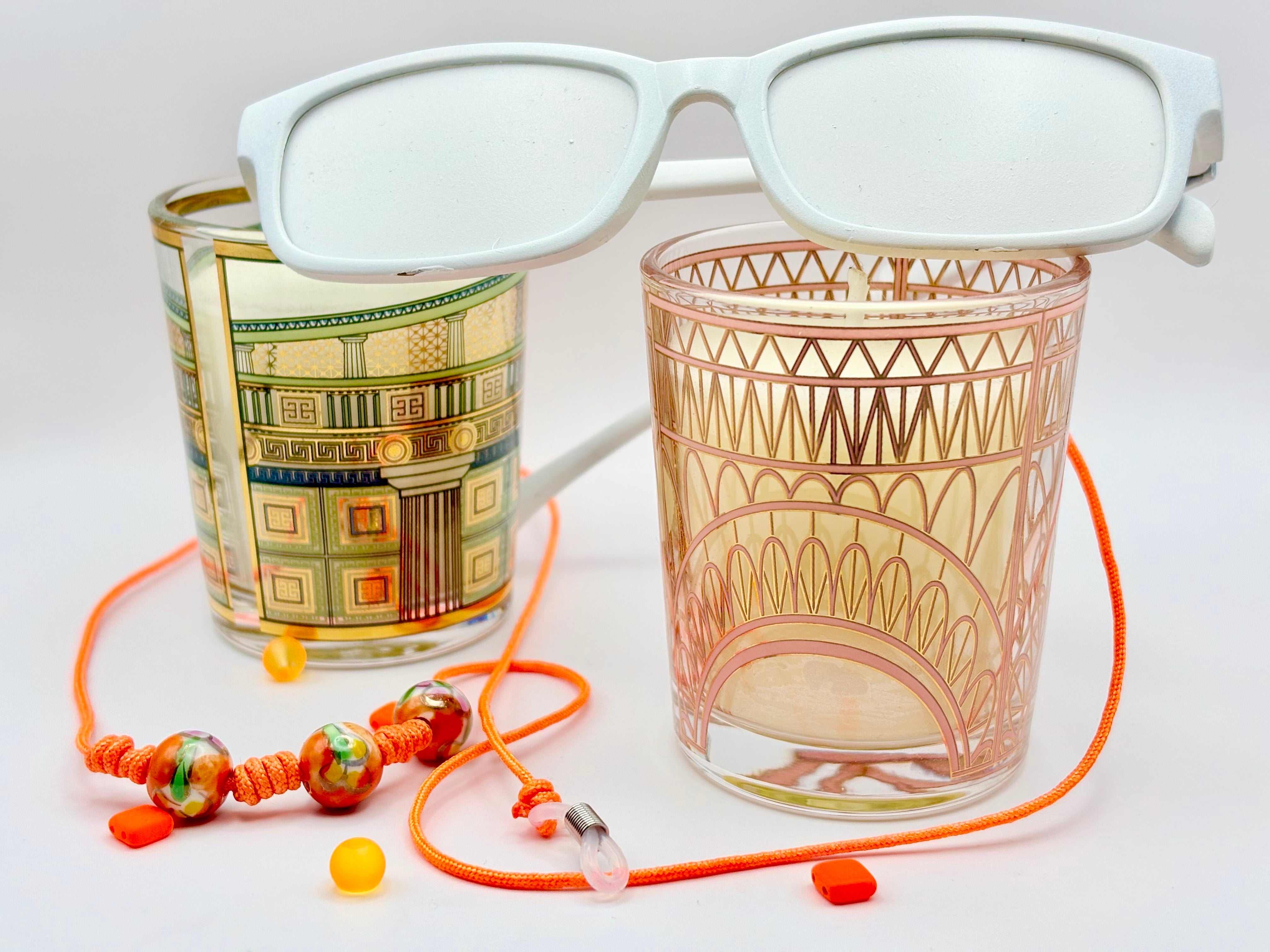 CHAINE COTON FLUO ORANGE AVEC PERLES EN CERAMIQUE