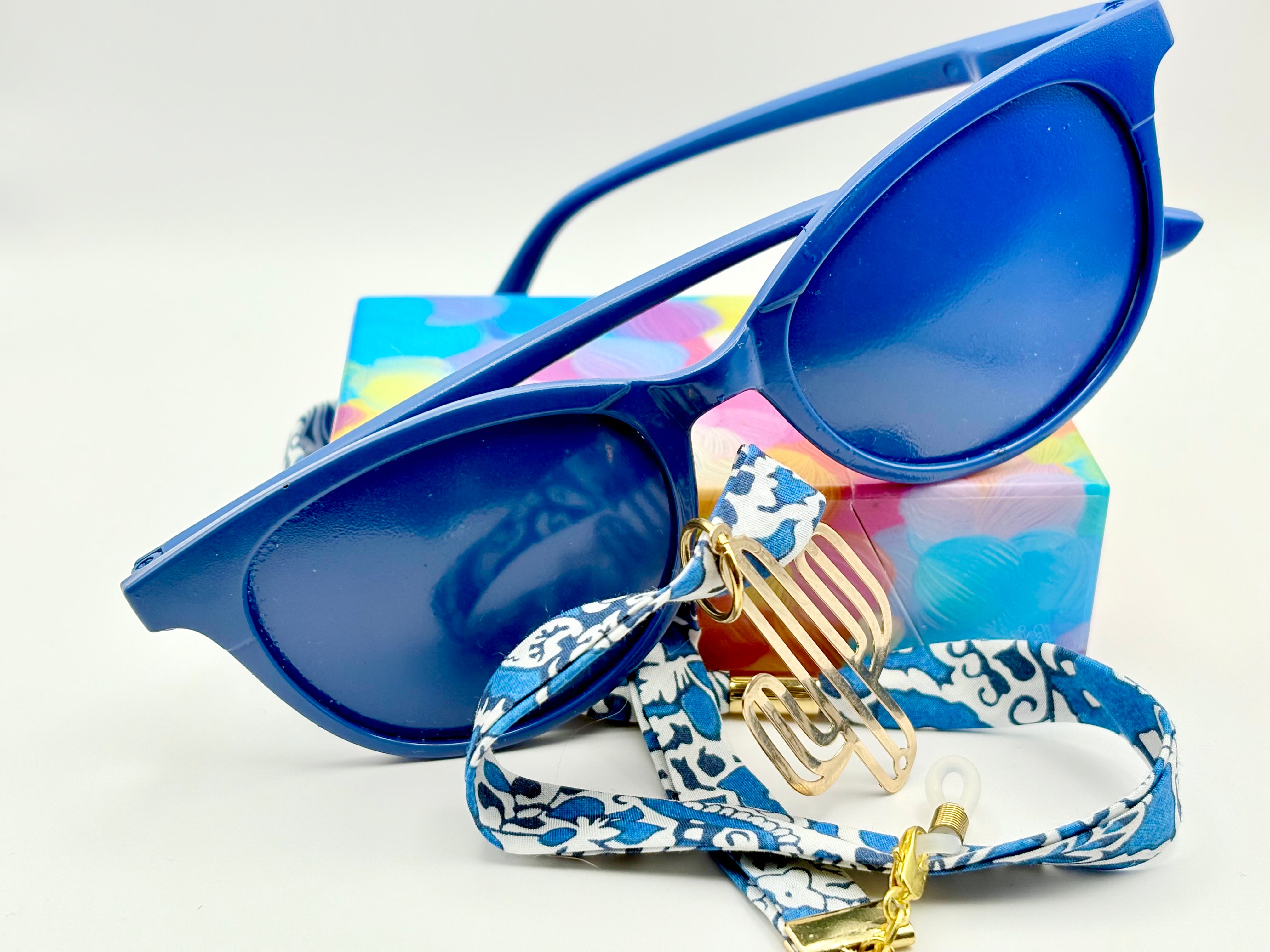 CHAINE EN LIBERTY DE COULEUR BLEUE AVEC CHARM CACTUS.